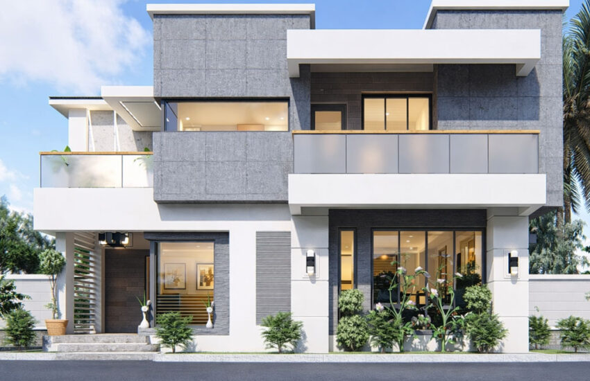 Modern 4 bedroom duplex house plan with hidden roof