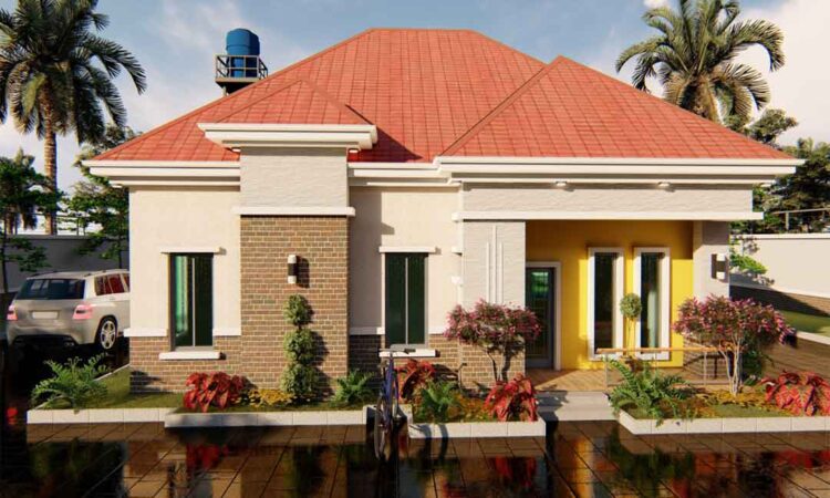 This Portable 3-bedroom Nigerian house plan is designed for family couples who want to move to their apartment. it can fit into a half plot measuring 50 x 50 square meters. Two of the rooms share one single toilet and bath system while the master bedroom has its own toilet and bathroom system.
